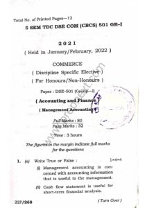 DSE-501 (Group- I) (Management Accounting) (2021) B.Com (CBCS)